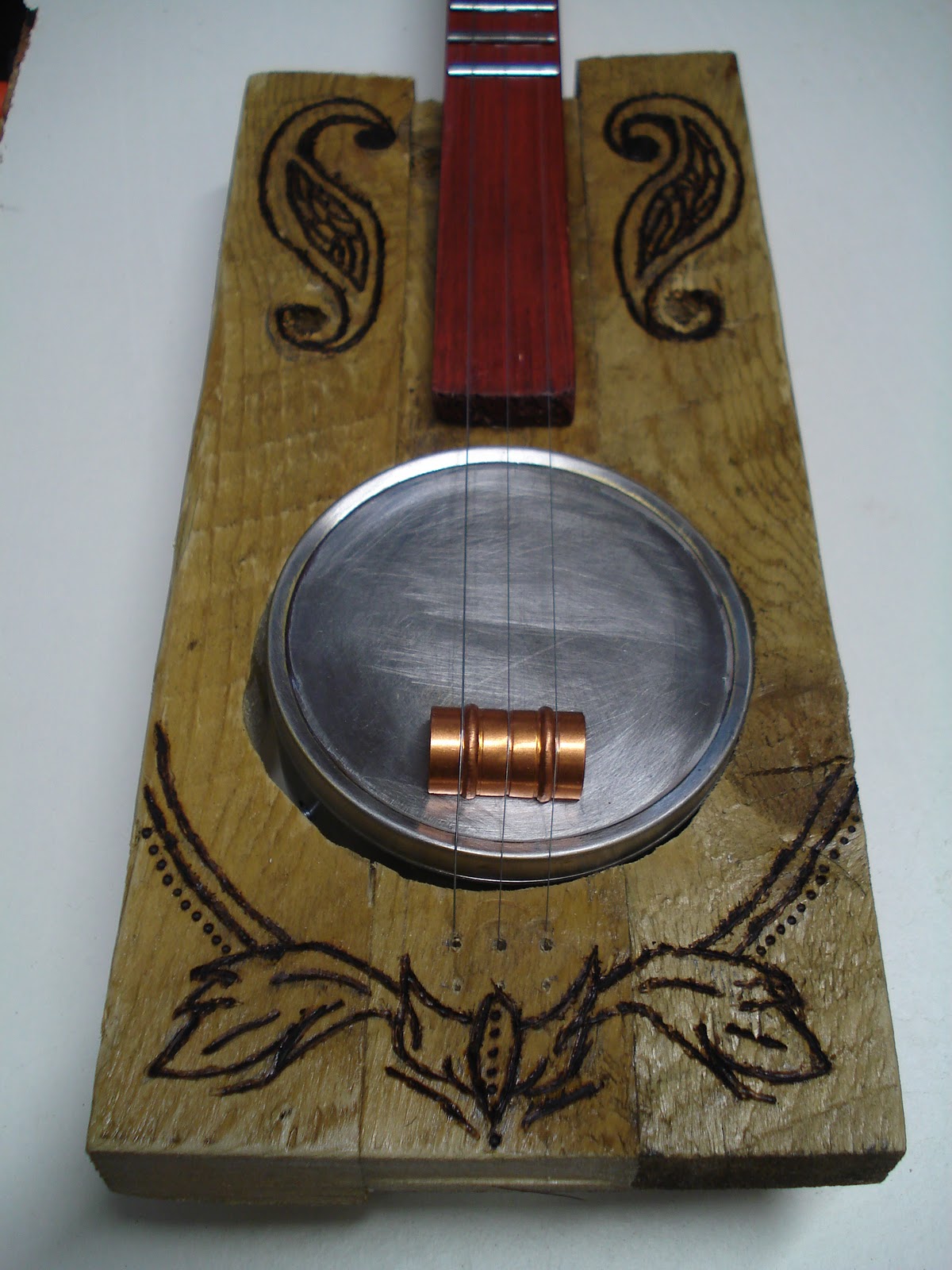 This is my latest Tinjo made from old fence posts, BBQ skewers, copper pipe and a travel sweet tin!