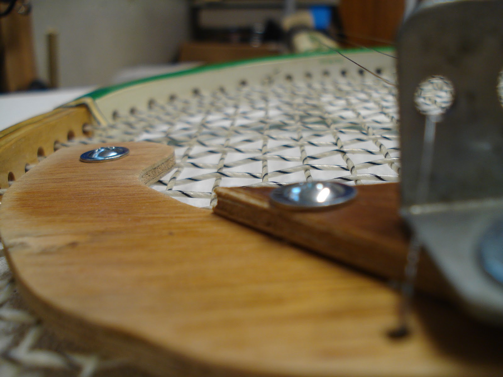 This is a demonstration of a tennis racket guitar prototype, It uses a piezo mic embedded in a wooden holder directly beneath the bridge to pick up the vibrations of the string.