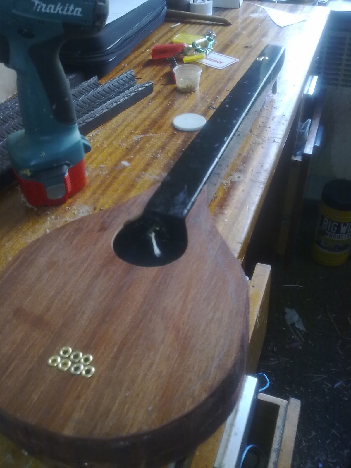 Another thing I wanted to try out was a quick and dirty way to make a hollow bodied instrument, you can see how I did that in the progress pics.