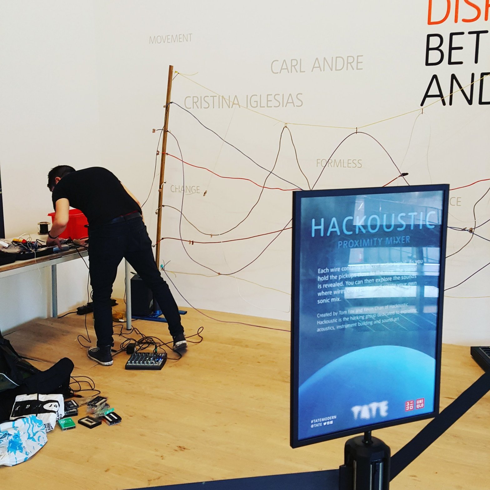 This installation uses hidden audio signals that travel along lengths of wire, by placing the pickups close to the wire you can reveal and mix the audio in your own way. I first showed a prototype of this at a Drake Music hackathon, and then showcased it at the Tate Moderns first ever Tate LatesContinue reading “The Proximity Mixer”