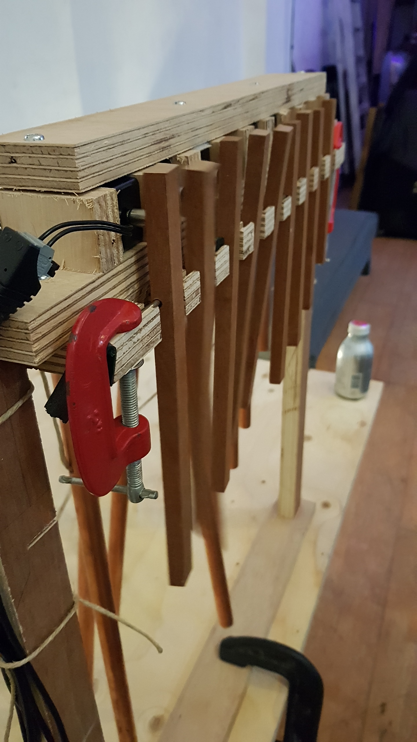 My latest creation is a solenoid driven tubular bell rig, made from copper pipe and scrap wood. The assembly is collapsable and houses the solenoids that come with the DADA machines Automat kit. It’s going to be a very versatile instrument played by many different methods, I can hook it up to my Hummingbird installationContinue reading “Tubular Solenoid Bells”