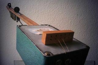 The idea was nice and simple, the method of play was much like my other machines except that the washers acted like frets that you could shorten each wire with ease. In practise though, it proved very very difficult to build, and once the wooden base had warped slightly, it put all the frets out of place and messed up all my careful measurements!